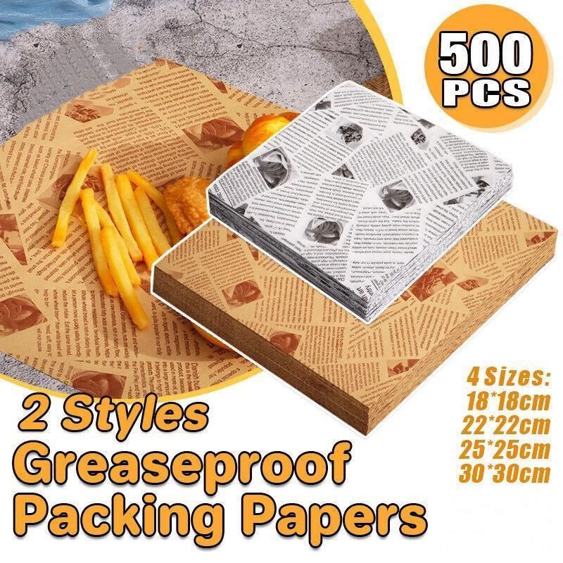 Greaseproof Food Wrapping Papers 500PCS 4Sizes 2Colours