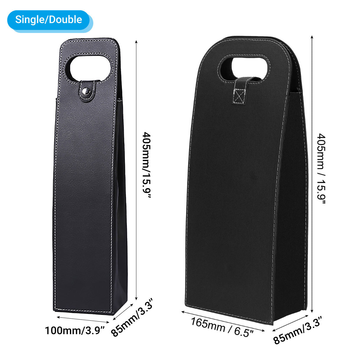 PU Leather Wine Tote Bag Single Double Bottle Foldable Carry Bag - Black-Single is backordered and will ship as soon as it is back in stock.