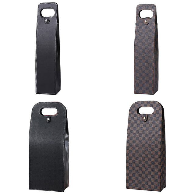 PU Leather Wine Tote Bag Single Double Bottle Foldable Carry Bag