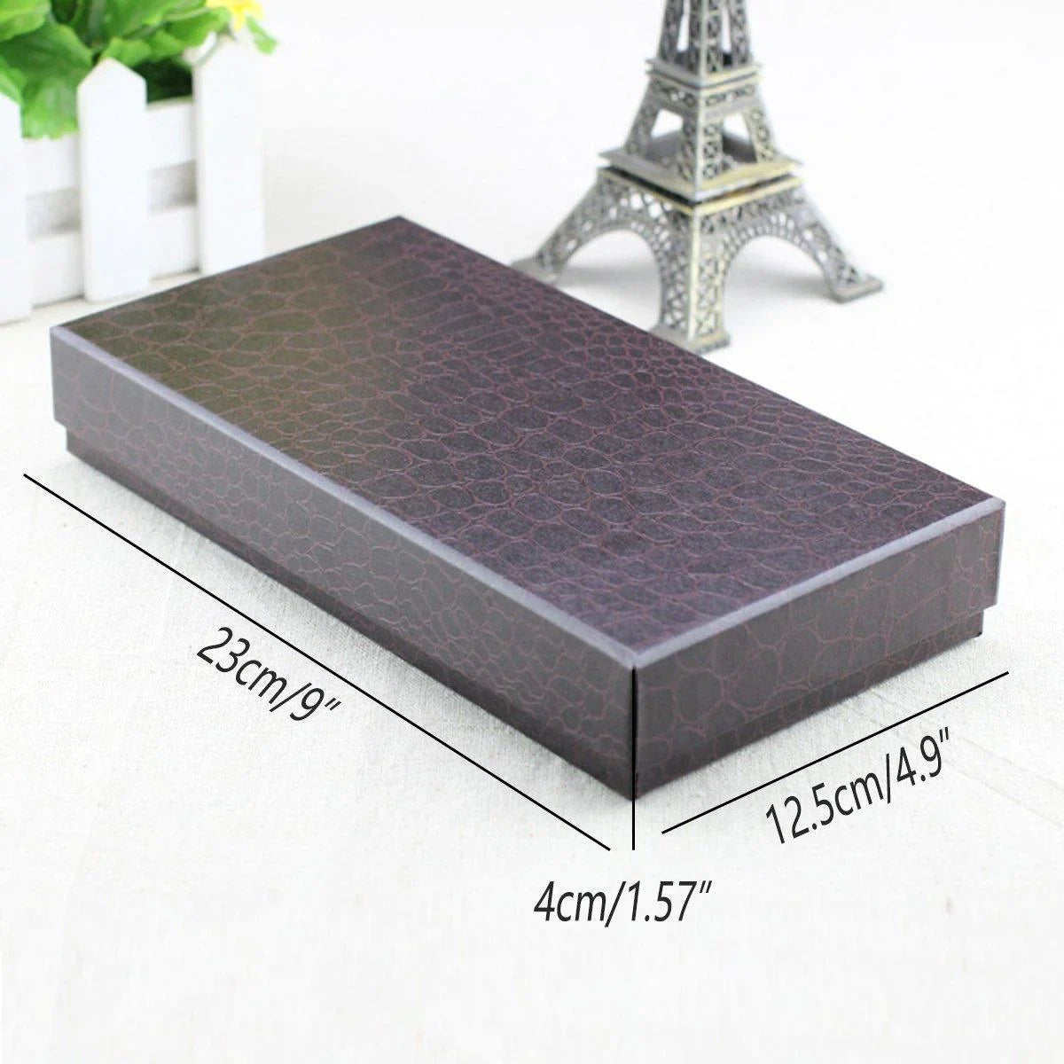 Introducing our premium Python Pattern Cardboard Jewelry Set Boxes, a perfect blend of elegance and durability. Crafted from high-quality 1200g cardboard, this long gift box is designed to present your gifts in the most sophisticated manner. The outer dimensions are 2312.54cm, providing ample space for various items, while the inner dimensions of 22.211.73.5cm ensure a snug fit. Whether it's for a birthday, anniversary, or any special occasion, this gift box will elevate the presentation of your gifts. The sleek design and robust material make it an ideal choice for anyone looking to make their presents stand out. Moreover, the Python Pattern Cardboard Jewelry Set Box comes in a classic colour as shown, adding a touch of class to your gift. The package includes 10 PCS of these versatile long gift boxes, offering excellent value and convenience.