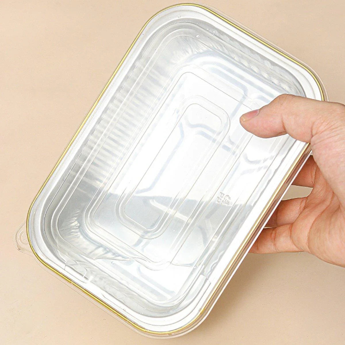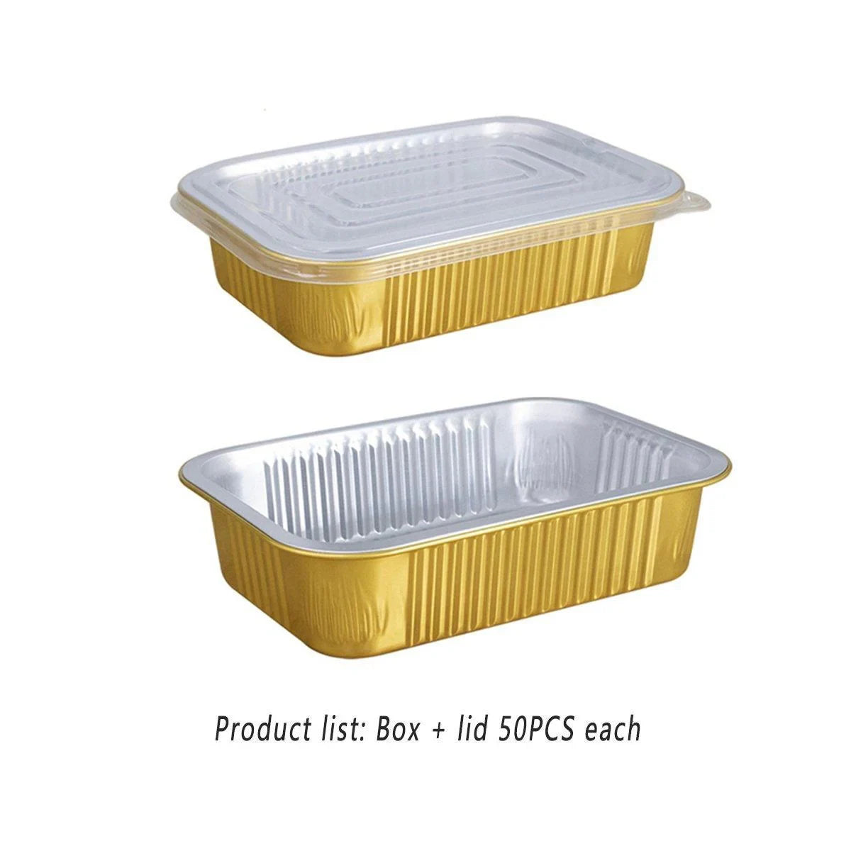 - 50 x Rectangle Aluminum Pans Foil Boxes with PP Lids