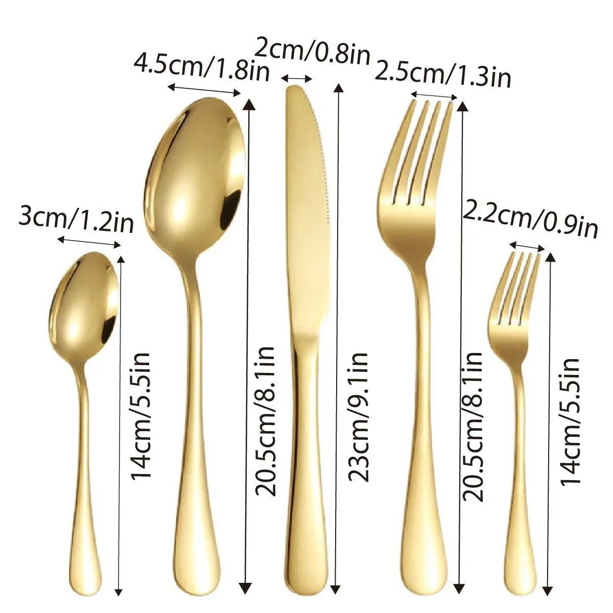 - Dessert Fork: 14 cm (5.5 inches)