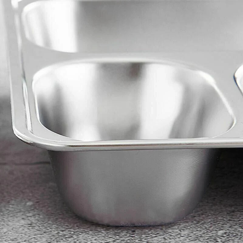 Introducing our Divided Dinner Tray—a versatile and durable solution for separating food without mixing sauces. Made from high-quality stainless steel, it is rust-resistant, wear-resistant, and easy to clean. The mirrored polish ensures a sleek look, while the crimping design keeps your hands safe. Perfect for everyday use, this tray is reusable, recyclable, and environmentally friendly.