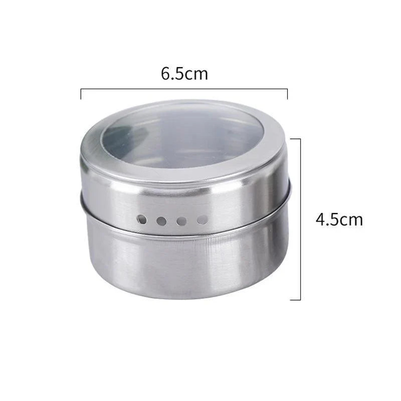 Elevate your kitchen organization with our 12pcs Stainless Steel Magnetic Spice Jars Rack! Designed to adhere effortlessly to any flat metal surface, these jars offer versatile storage for spices, art supplies, office essentials, and more. Featuring clear lids for easy content identification and twist-top design for convenient dispensing, these jars are a modern solution to kitchen clutter. Crafted from sturdy stainless steel, each jar comes with a magnetic backing, securely attaching to appliances and refrigerator doors for maximum convenience.