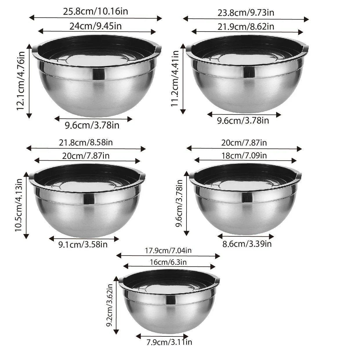 - Versatile Sizes: Includes five different bowl sizes, perfect for various tasks like mixing, baking, marinating, and serving.