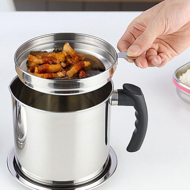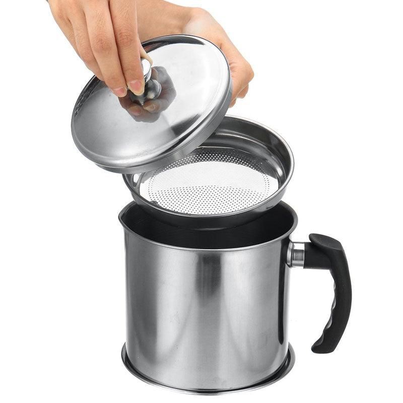 Upgrade your kitchen with this versatile Oil Strainer Pot, perfect for filtering, separating residues, and storing oil. Made from durable stainless steel and plastic, it combines functionality and quality for everyday use.