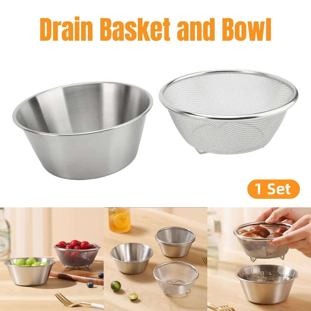 This 6.3-inch double-layer stainless steel fruit basin is the perfect tool for your kitchen, ideal for washing fruits, vegetables, and even whipping cream. Crafted from high-quality 304 stainless steel, it offers long-lasting durability and rust resistance. The double-layer design features a drainage screen that helps effectively remove water after washing, making it perfect for meal prep, cleaning produce, or other kitchen tasks. Its compact size ensures easy storage, while its sleek and modern design complements any kitchen decor.