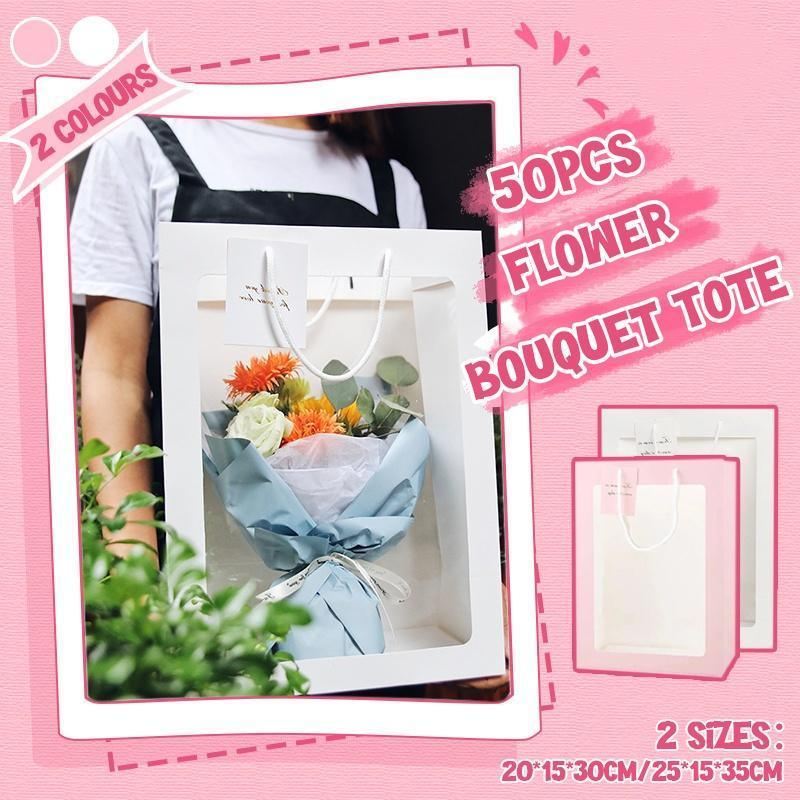 Floral Gift Bags 50PCS 2Sizes Pink/White Clear Window - White / 20*15*30cm is backordered and will ship as soon as it is back in stock.