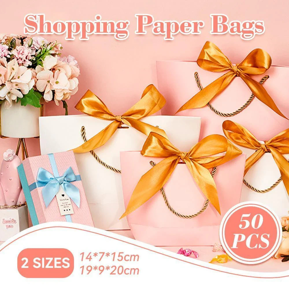 Bowknot Paper Gift Bags 50PCS 2Colours 2Sizes Paper