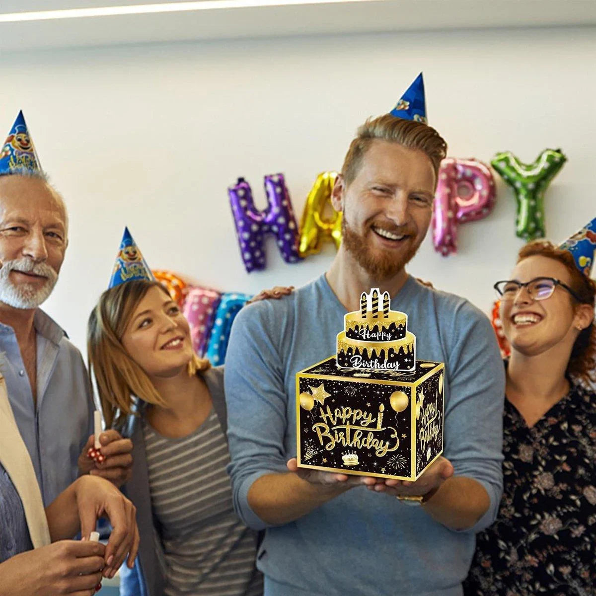 This black and gold birthday money box offers a creative and exciting way to give gifts. Featuring a unique design, it allows you to insert money into transparent bags that can be pulled out one by one, adding an element of surprise to the celebration. The elegant black and gold colour scheme makes it a stylish decoration for any birthday party. Easy to assemble, this money box is both fun and functional, providing an unforgettable gifting experience for the recipient. Perfect for adding a festive touch to any birthday event.