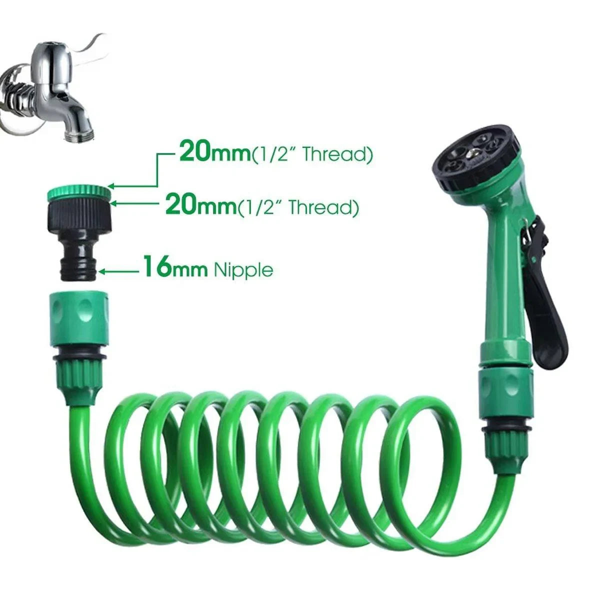 This spring-tube watering nozzle is a perfect solution for gardening and plant care. The telescopic design makes the hose highly flexible, expanding and contracting to your needs, preventing any tangling or mess. Whether you need to water plants, wash your car, or rinse your pet, this garden sprinkler is equipped with multiple spray settings to provide the right water flow for various tasks. With its durable and lightweight design, it's an essential tool for every household garden.