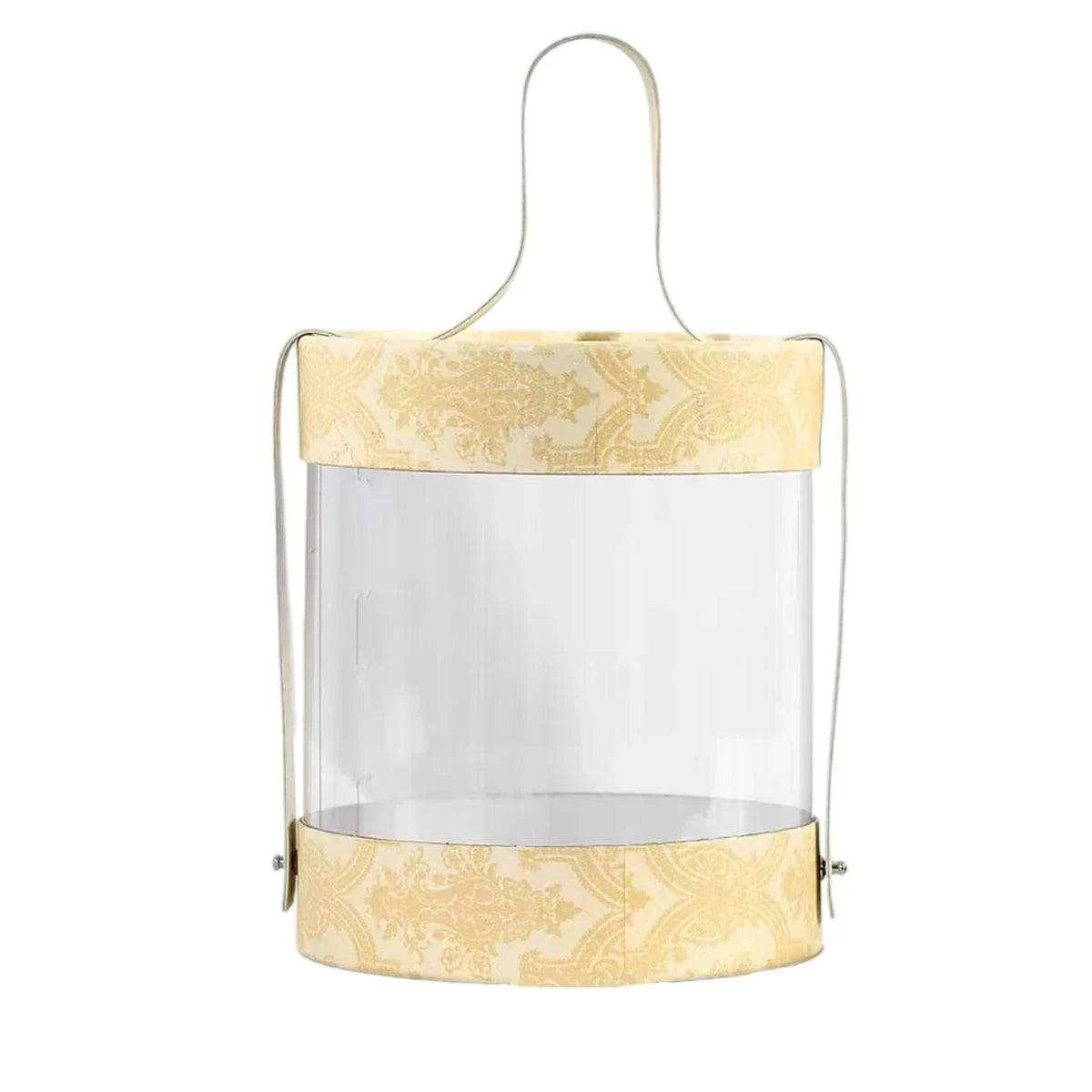 Enhance your gift presentation with this set of 10 portable transparent hug bucket boxes. Designed for elegance and convenience, these boxes are perfect for storing desserts, cookies, candies, and small gifts. The combination of a clear plastic window and decorative patterned trim provides a stylish and high-end appearance. Featuring a sturdy handle and a secure closure, these buckets are easy to carry and ideal for parties, weddings, and festive events.