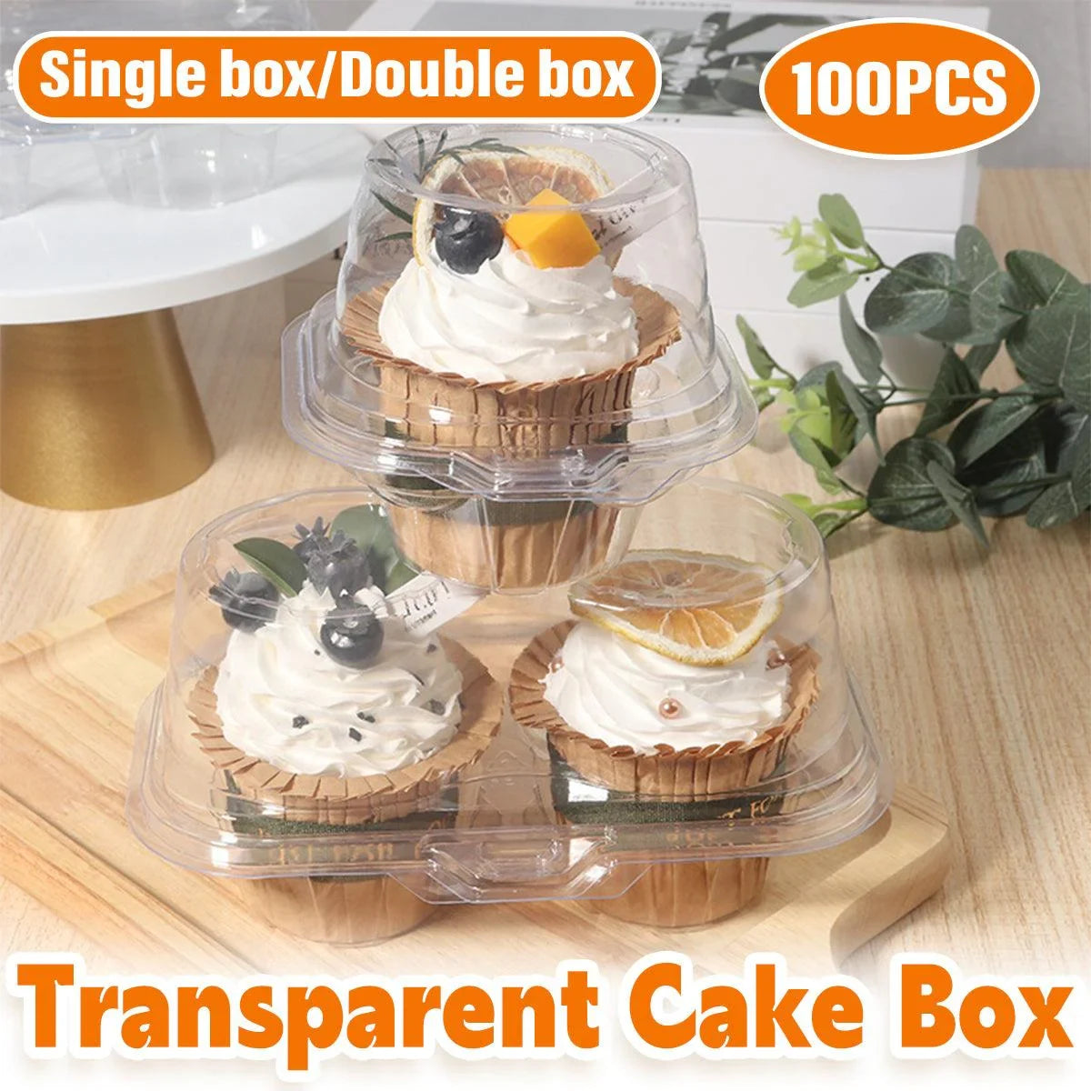100 x Transparent cupcake packaging boxes (Single and double options included)