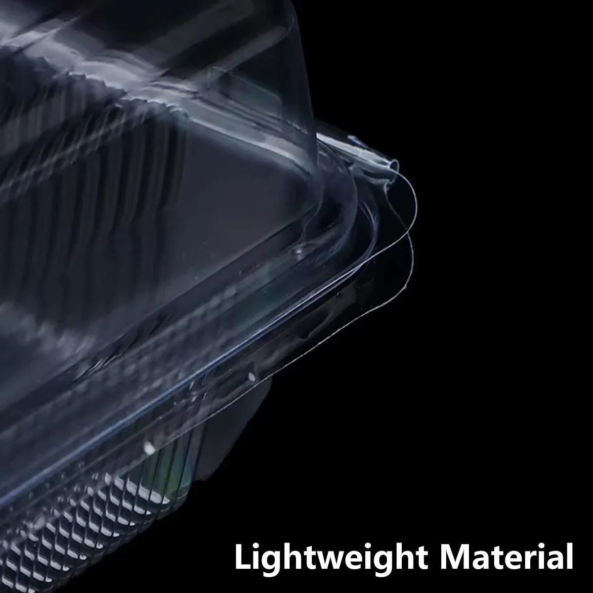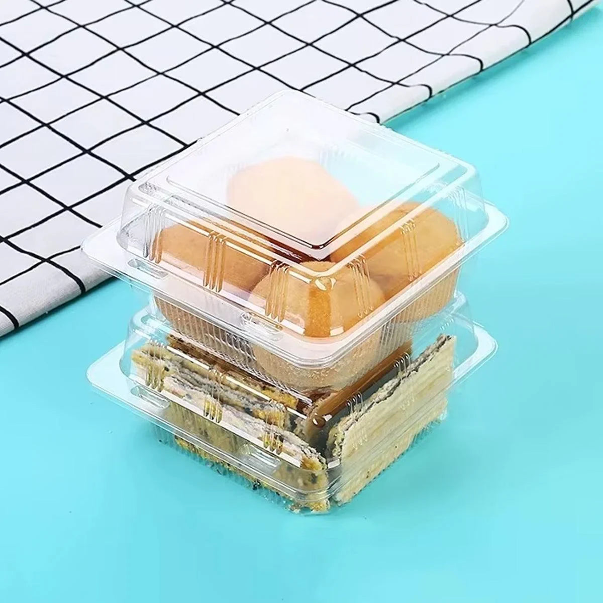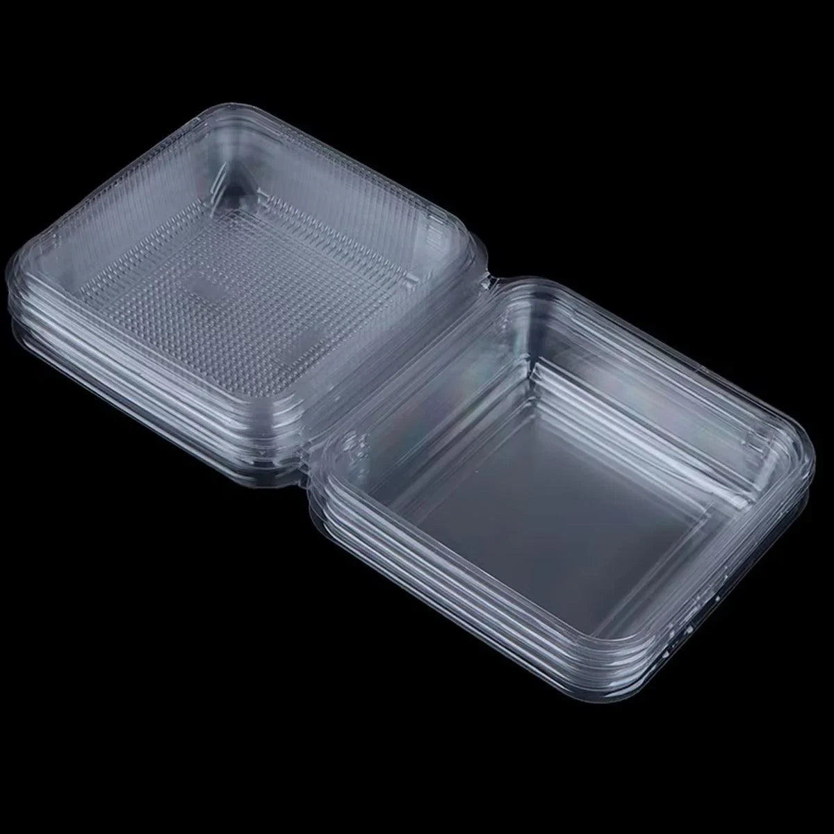 These transparent pastry boxes are perfect for packaging hamburgers, cakes, pastries, and other baked goods while maintaining freshness. Made from durable food-grade plastic, they offer excellent clarity to showcase the contents while providing secure storage with a snap-on lid. The sturdy and lightweight design makes them ideal for bakeries, cafes, takeaways, and home use. Featuring a ribbed texture and reinforced structure, these containers ensure food remains intact during transport. Their stackable design saves space, making them an efficient storage and packaging solution.