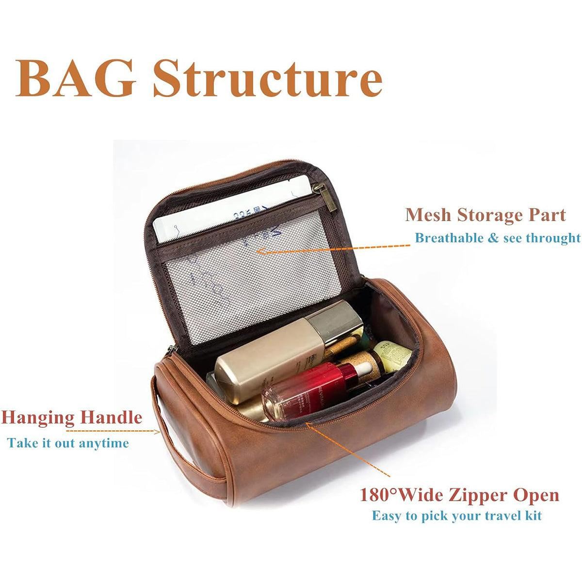 Main Compartment: Spacious for toiletries, cosmetics, and grooming essentials
