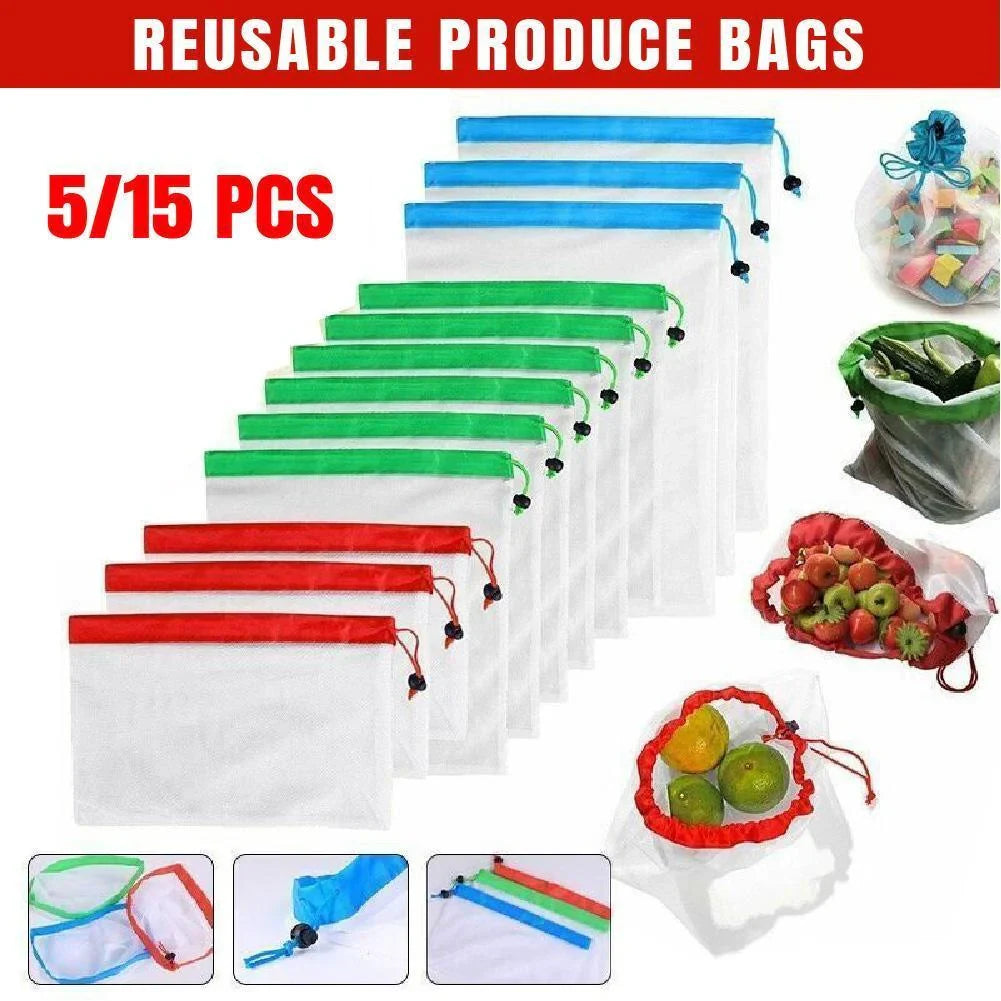 - 5/15pcs x Reusable Mesh Grocery Produce Bags