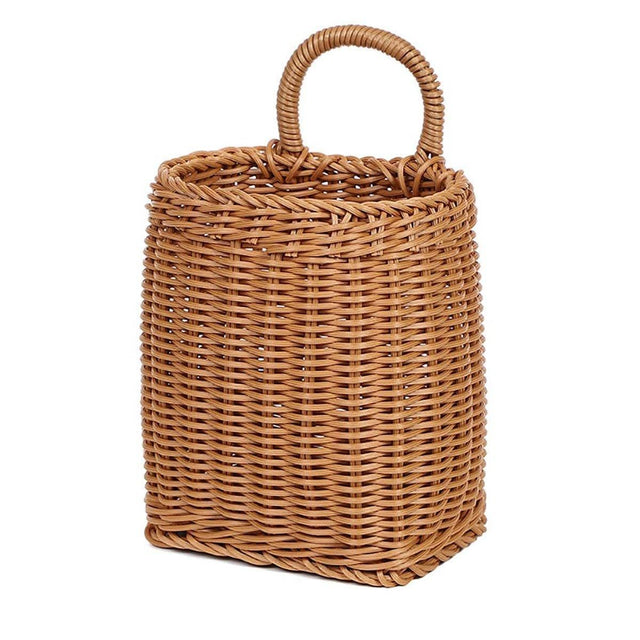 This versatile woven storage basket combines functionality with vintage charm, making it a perfect addition to your kitchen, living room, or hallway. Handcrafted from durable simulated rattan, this basket features a compact design with a sturdy handle for easy hanging or portability. Ideal for storing utensils, small items, or decorative flowers, it brings a touch of rustic elegance to any space. Its washable and resilient material ensures long-lasting use, making it both practical and stylish.