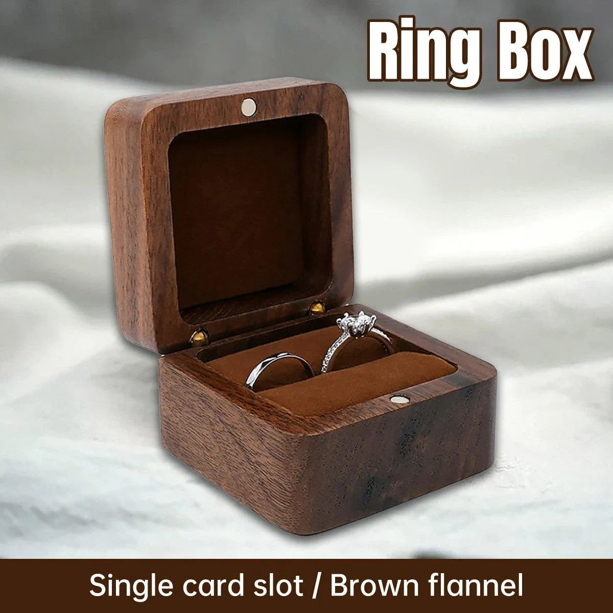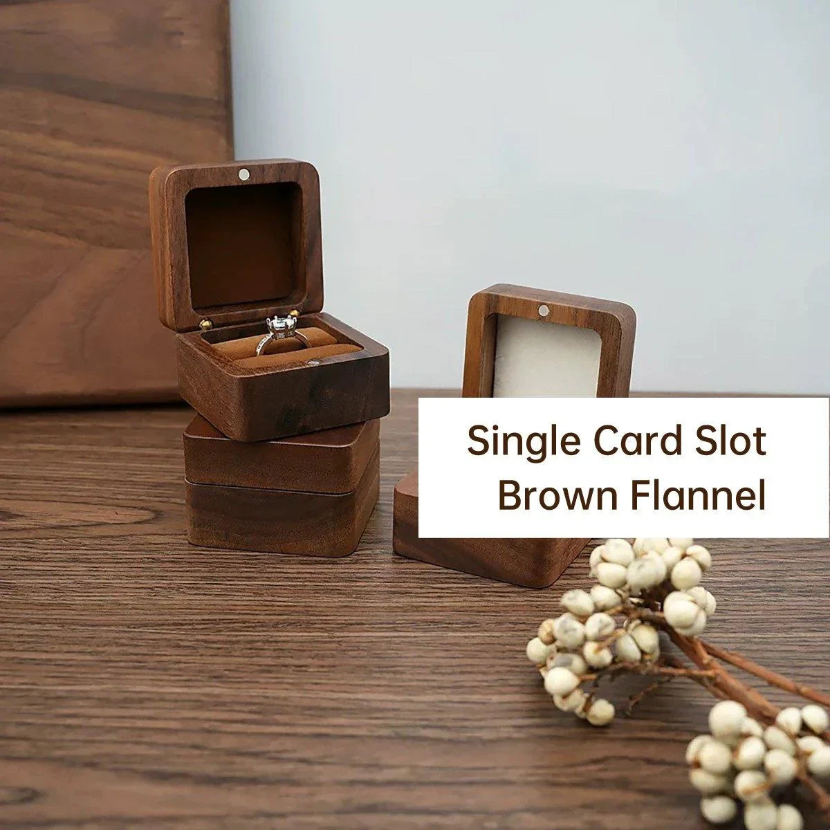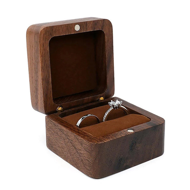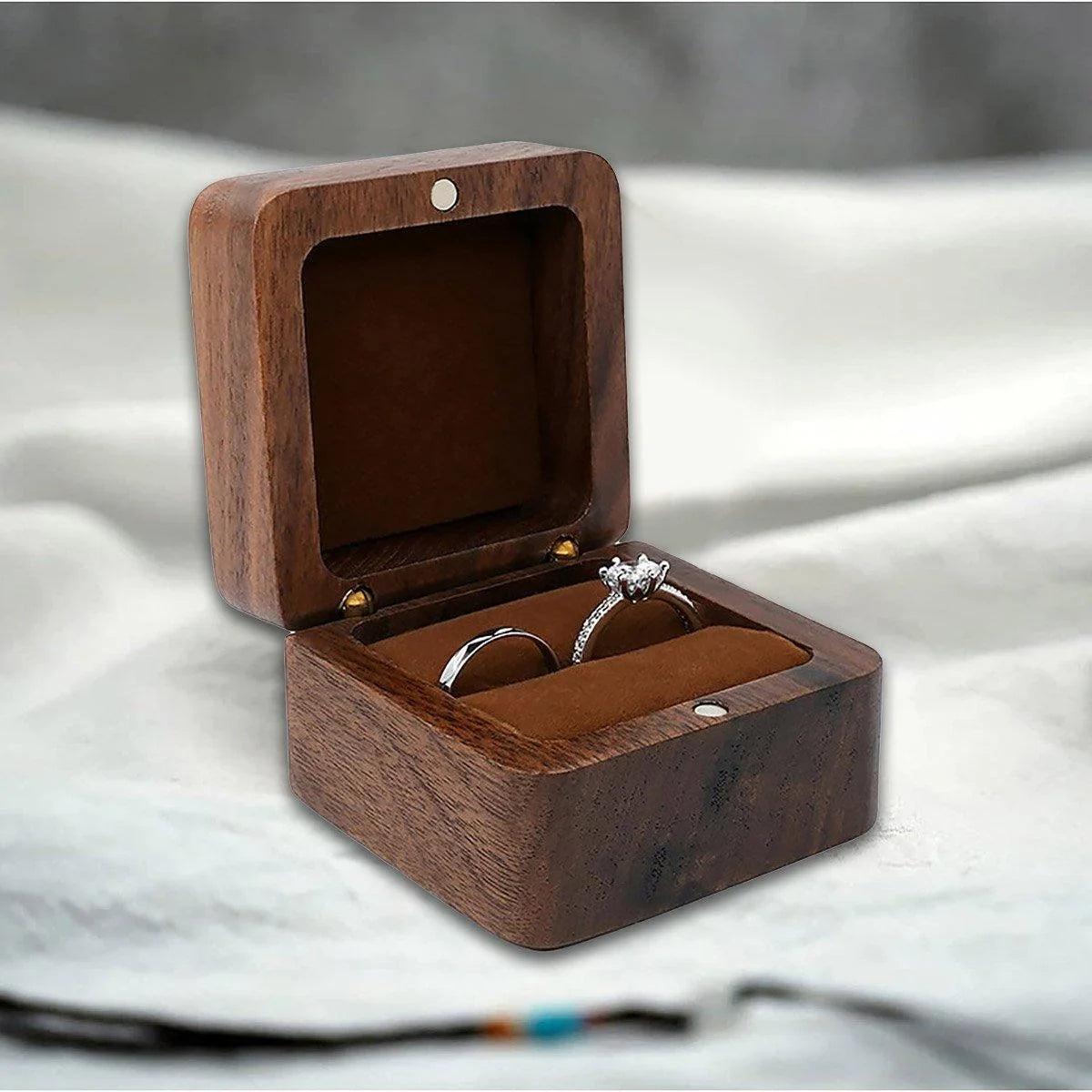 Elevate the presentation of your cherished rings with this exquisite wooden ring box. Made from premium wood, the box features a timeless design that complements any occasion, from elegant proposals to daily storage. The interior is lined with soft brown flannel, offering a secure and protective home for your rings. Its compact size makes it perfect for carrying in your pocket or bag, and the magnetic closure ensures your treasures remain safely tucked inside. Please note, the rings shown in the images are for demonstration purposes only and are not included.