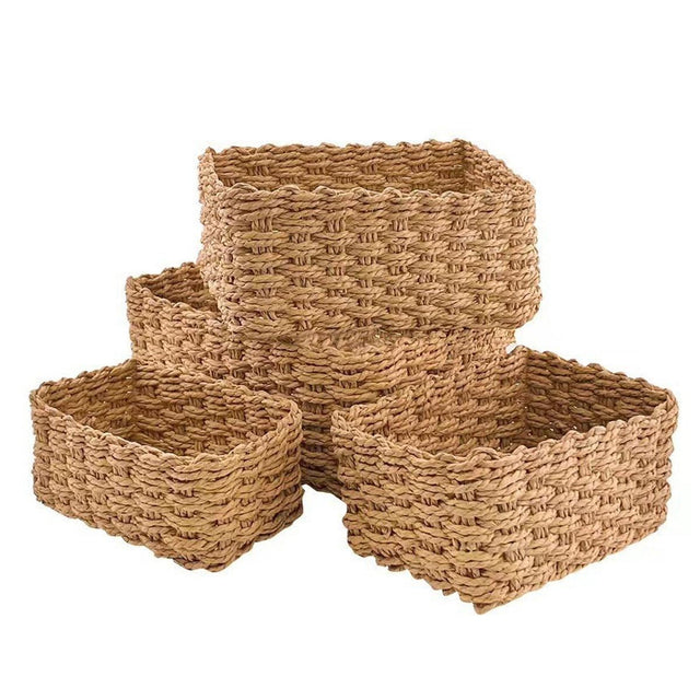 Organize your space with this 4-piece hand-woven storage basket set, designed to bring both function and rustic charm to any room. Made from durable straw material, these baskets offer versatile storage solutions for cosmetics, clothing, pantry items, toys, and more. With four different sizes, they provide the flexibility to store a variety of items while adding a stylish touch to your home or office decor. Lightweight and sturdy, these baskets are easy to handle and perfect for maintaining a tidy and organized space.